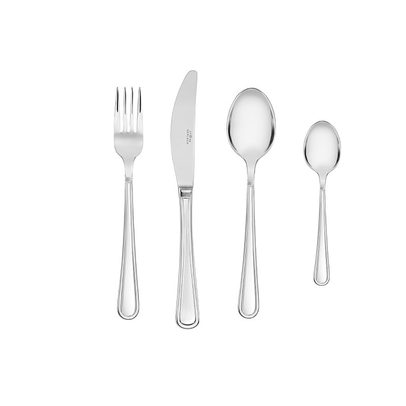 Sztućce Antica polskiego producenta GERLACH to linia oparta na tradycyjnym wzornictwie o delikatnym zdobieniu. Ich ponad czasowy styl i prosta elegancja sprawiają, że mogą stać się wspaniałym akcentem wystawnym przyjęć, jak również codziennych posiłków. Skład zestawu sztućców: nóż obiadowy – 6 sztuk, widelec obiadowy – 6 sztuk. łyżka obiadowa – 6 sztuk, łyżeczka do herbaty – 6 sztuk