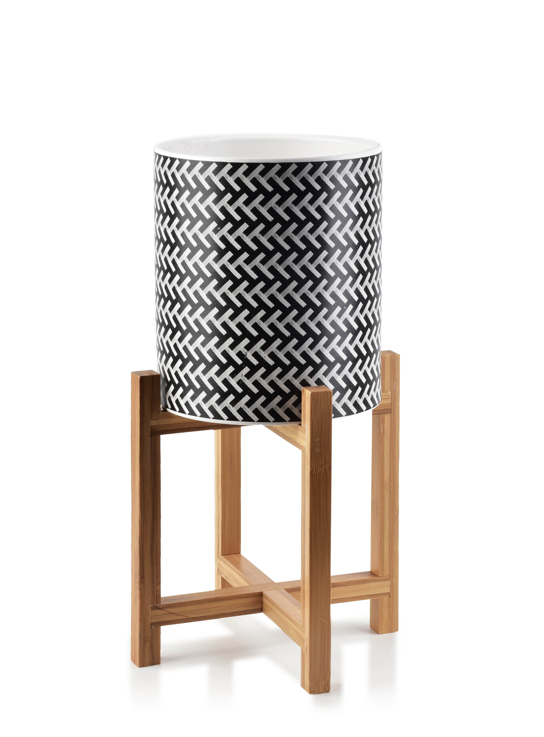 Doniczka ceramiczna na drewnianym stojaku z serii AVA marki MONDEX. Świetne uzupełnienie każdego wnętrza. Trend na rośliny we wnętrzach dosłownie rozkwita, nasza linia doniczek świetnie go uzupełni. wymiary samej doniczki: średnica: 18 cm wysokość: 20 cm wymiary razem ze stojakiem: długość: 18 cm szerokość: 18 cm wysokość: 40 cm