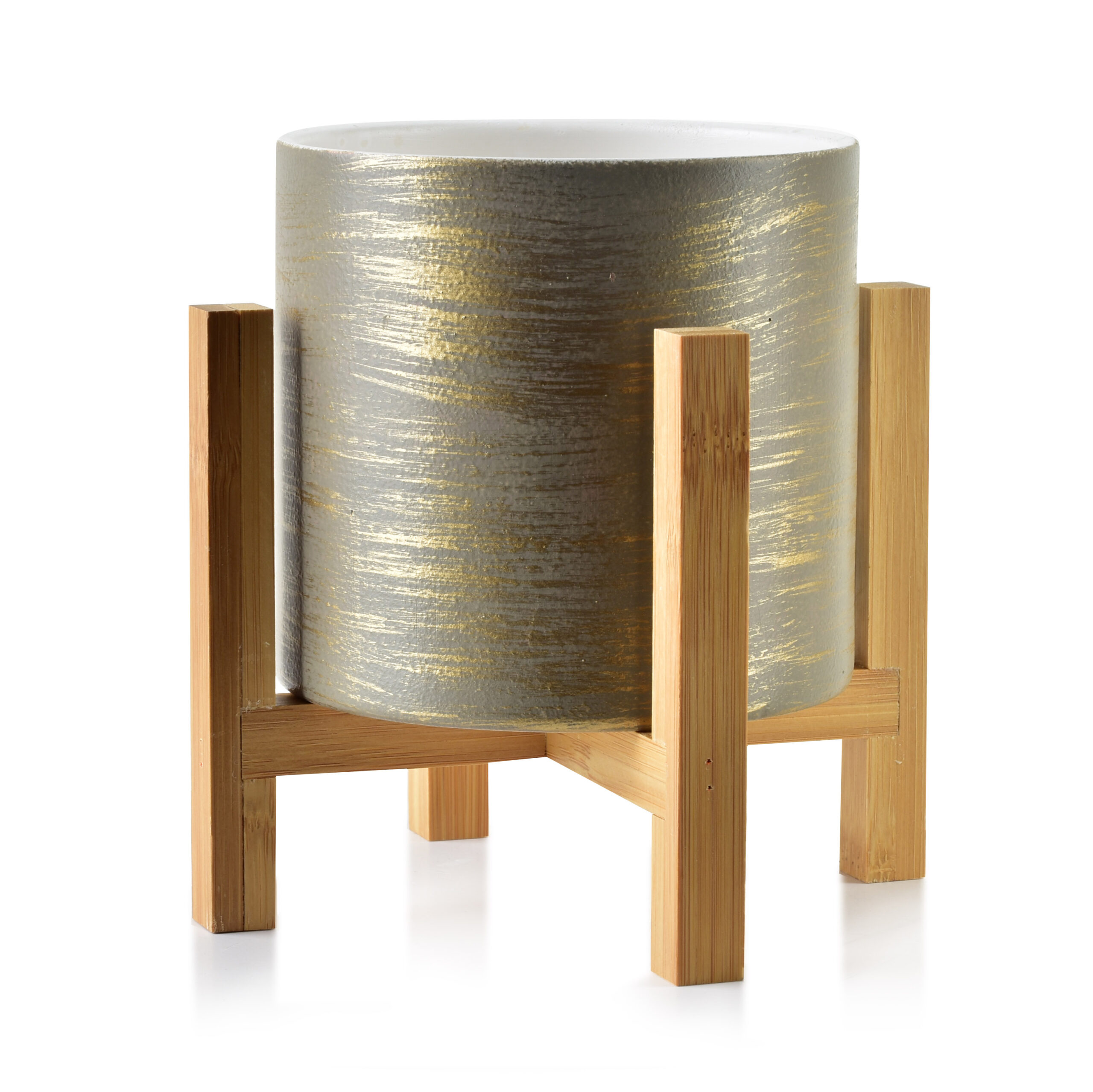 Napisz pierwszą opinię o „AVA Doniczka 12,5×12,5×11,7 cm na stojaku szaro-złota”