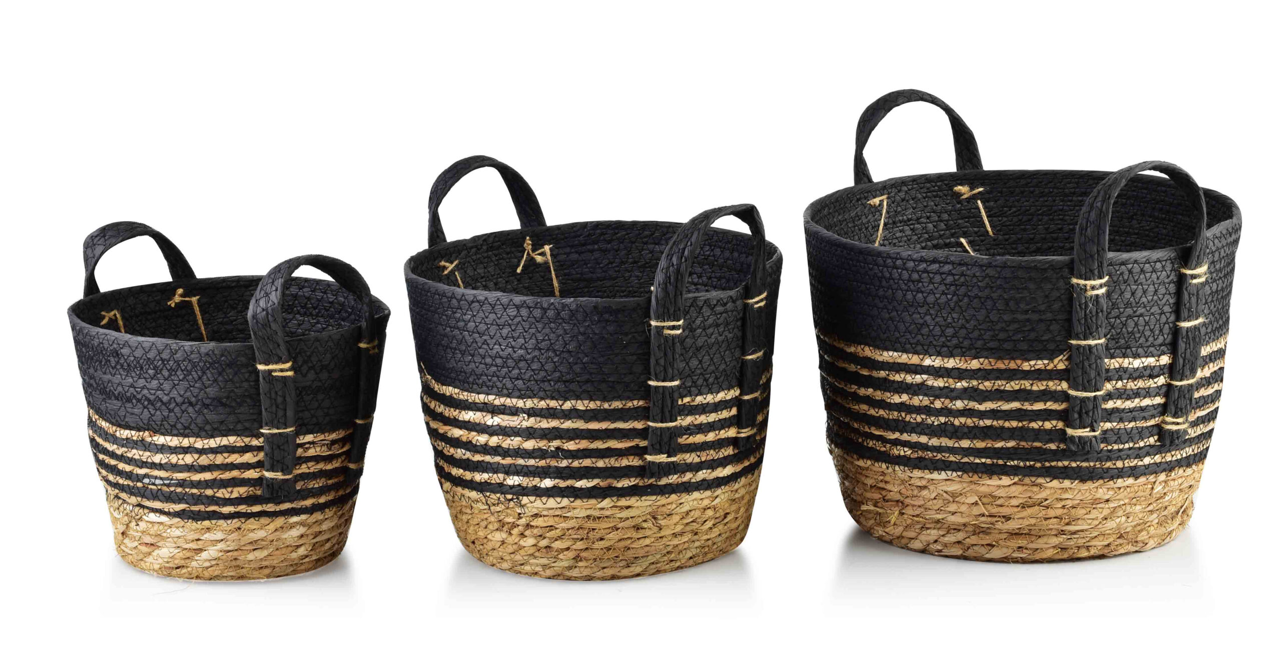 Komplet koszy z serii BALI marki MONDEX. Kosze zostały wykonane z trawy morskiej. Ta forma dekoracji jest hitem ostatnich kilku sezonów z uwagi na swoją niezwykle zróżnicowaną możliwość aranżacji. Dzięki połączeniom kolorystycznym idealnie wpasuje się w każde wnętrze. Kosze z trawy morskiej, który chętnie wykorzystują dekoratorzy w swoich aranżacjach, świetnie sprawdzą się do wnętrz boho, Etno lub eklektycznych. XL:33x33xH:26 L:28x28xH:23 M:23x23xH:20cm