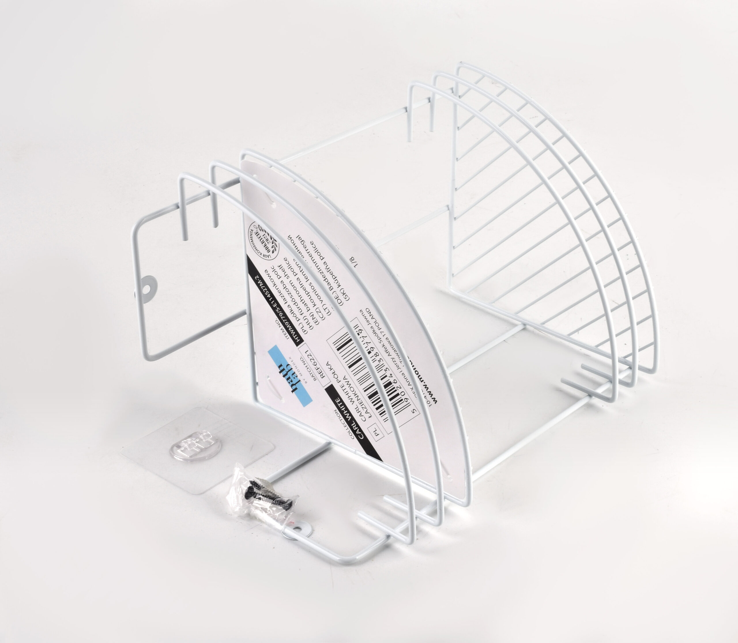 Metalowa półka łazienkowa z serii CARL WHITE marki BATHLAB. Biała do zamontowania na wkręty jak i na przylepce. Posiada 2 półki. 19cm x19cm *h30cm