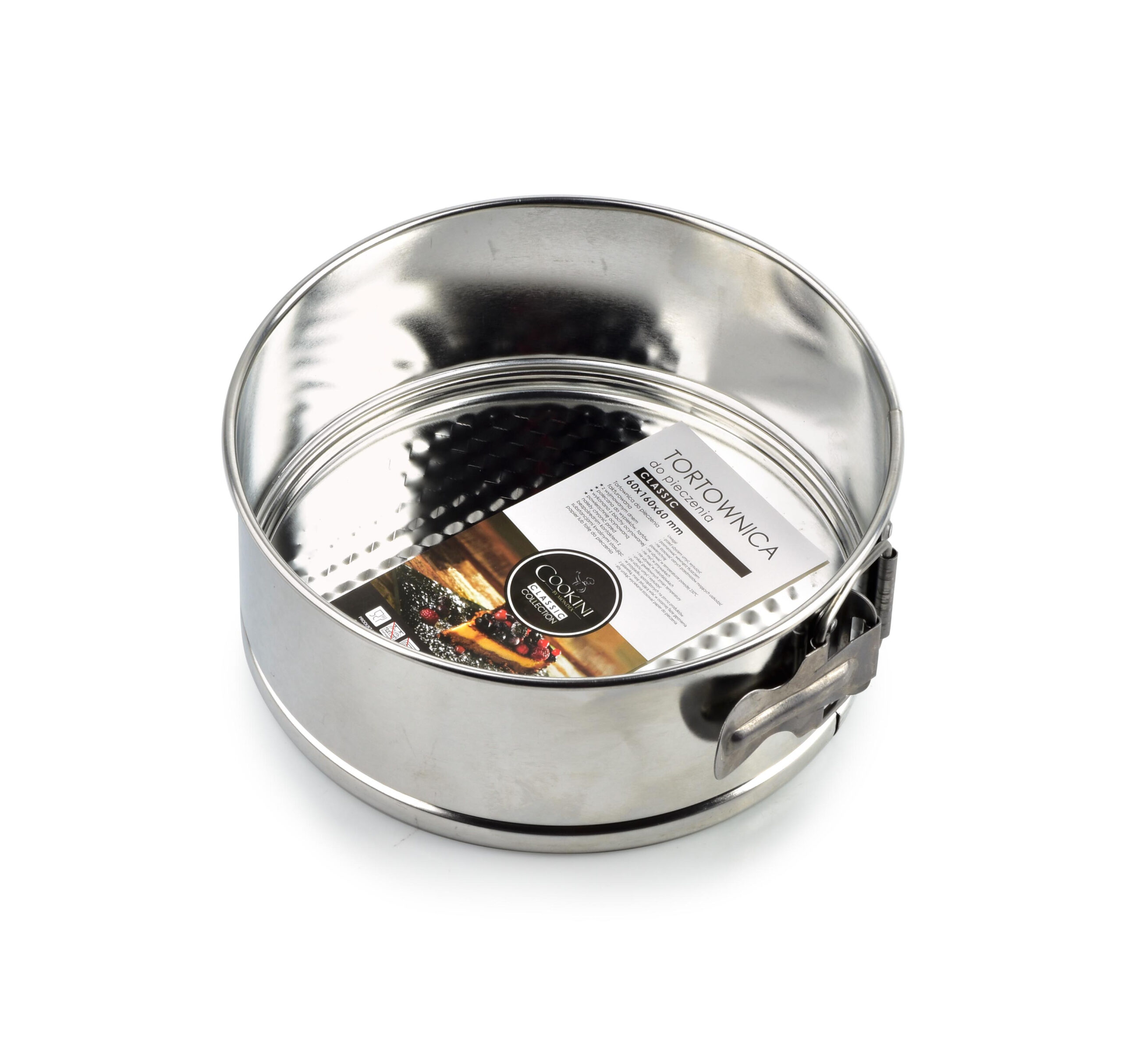 Tortownica do pieczenia z kolekcji Classic marki Cookini by Mondexfakturowanaz wyjmowanym dnempolecana do wypieków, tortówwykonana z blachy ocynowanej powierzchnię ocynowaną należy chronić przed bezpośrednim kontaktem z substancjami kwaśnymi stosując papier lub folię do pieczenia Uwaga!- przed użyciem umyć, wysuszyći posmarować wewnątrz tłuszczem- nie stosować ostrych przedmiotów mogących uszkodzić powierzchnię- nie używać w temperaturze powyżej 230C- nie myć w zmywarkach- nie używać w mikrofalówkach- unikać gwałtownych zmian temperatury- po użyciu umyć i wysuszyć- w przypadku sporządzonych na zimno produktówz galaretką, masę żelującą wlać w ostatniej fazie gęstnienia- aby unikąć wyciekania stosować papier do pieczenia