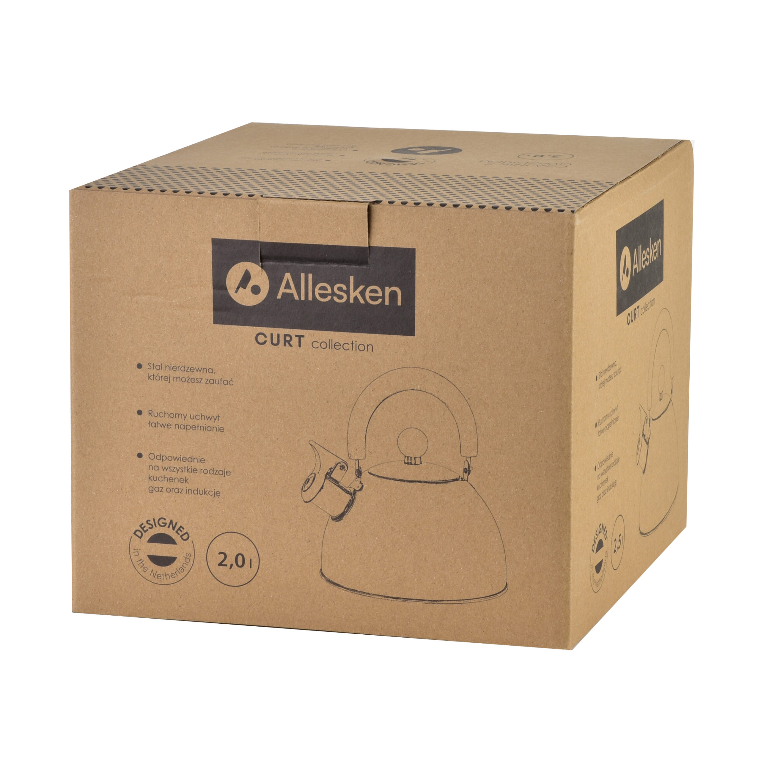 Przedstawiamy czajnik CURT marki ALLESKEN o pojemności 2,0 litra . doskonały wybór dla każdej kuchni. Czajnik CURT został wykonany z wysokiej jakości stali nierdzewnej, co zapewnia jego wytrzymałość i elegancki wygląd. Dzięki nowoczesnemu designowi i praktycznym funkcjom, czajnik CURT staje się niezastąpionym elementem każdej kuchni. Główne cechy produktu:Materiał: wysokiej jakości stal nierdzewna, odporna na rdzewienie i korozję. Pojemność: 2,0 litra, idealna dla większych rodzin i gości. Ergonomiczny uchwyt: zapewnia wygodne i bezpieczne użytkowanie. Gwizdek: informuje o zagotowaniu wody, zapewniając wygodę i bezpieczeństwo. Stylowy design: nowoczesny wygląd, który doskonale komponuje się z wystrojem każdej kuchni.Dlaczego warto wybrać czajnik CURT? Wytrzymałość: solidna konstrukcja ze stali nierdzewnej gwarantuje długotrwałe użytkowanie. Łatwość czyszczenia: stal nierdzewna jest łatwa do utrzymania w czystości, co pozwala na długotrwałe użytkowanie bez problemów. Bezpieczeństwo: stal nierdzewna nie reaguje z wodą, zapewniając zdrowe i bezpieczne użytkowanie. Wybierz czajnik CURT 2,0L, aby cieszyć się niezawodnością, elegancją i funkcjonalnością w swojej kuchni każdego dnia.Średnica dna: 18cm Wysokość z rączką: 22cm