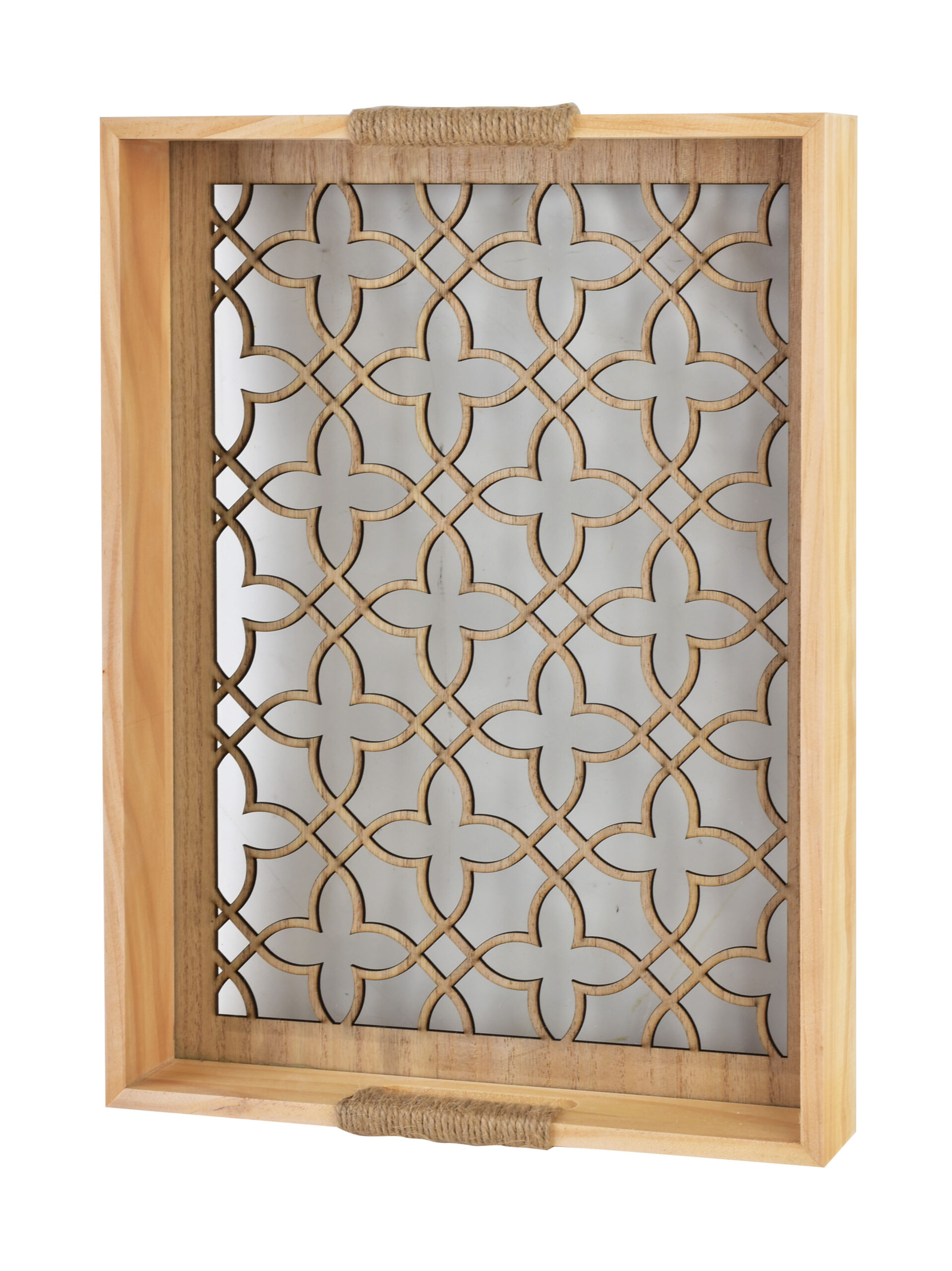 DAZ . Elegancka Taca 39,5 x 29,5 x 5,5 cm to stylowy i funkcjonalny dodatek do wnętrza, idealny do serwowania napojów, przekąsek lub jako element dekoracyjny.Cechy produktu:. Wymiary: 39,5 x 29,5 x 5,5 cm . wygodna do przenoszenia i użytkowania.. Solidne wykonanie . trwała i stabilna konstrukcja zapewnia długą żywotność.. Nowoczesny design . elegancki wygląd sprawia, że taca pasuje do różnych aranżacji wnętrz, od klasycznych po nowoczesne.. Wszechstronne zastosowanie . doskonała do serwowania, dekoracji lub jako organizer na drobiazgi.To idealny wybór dla osób ceniących stylowe i praktyczne dodatki do domu. Świetnie sprawdzi się również jako pomysł na prezent dla miłośników eleganckich akcesoriów wnętrzarskich.