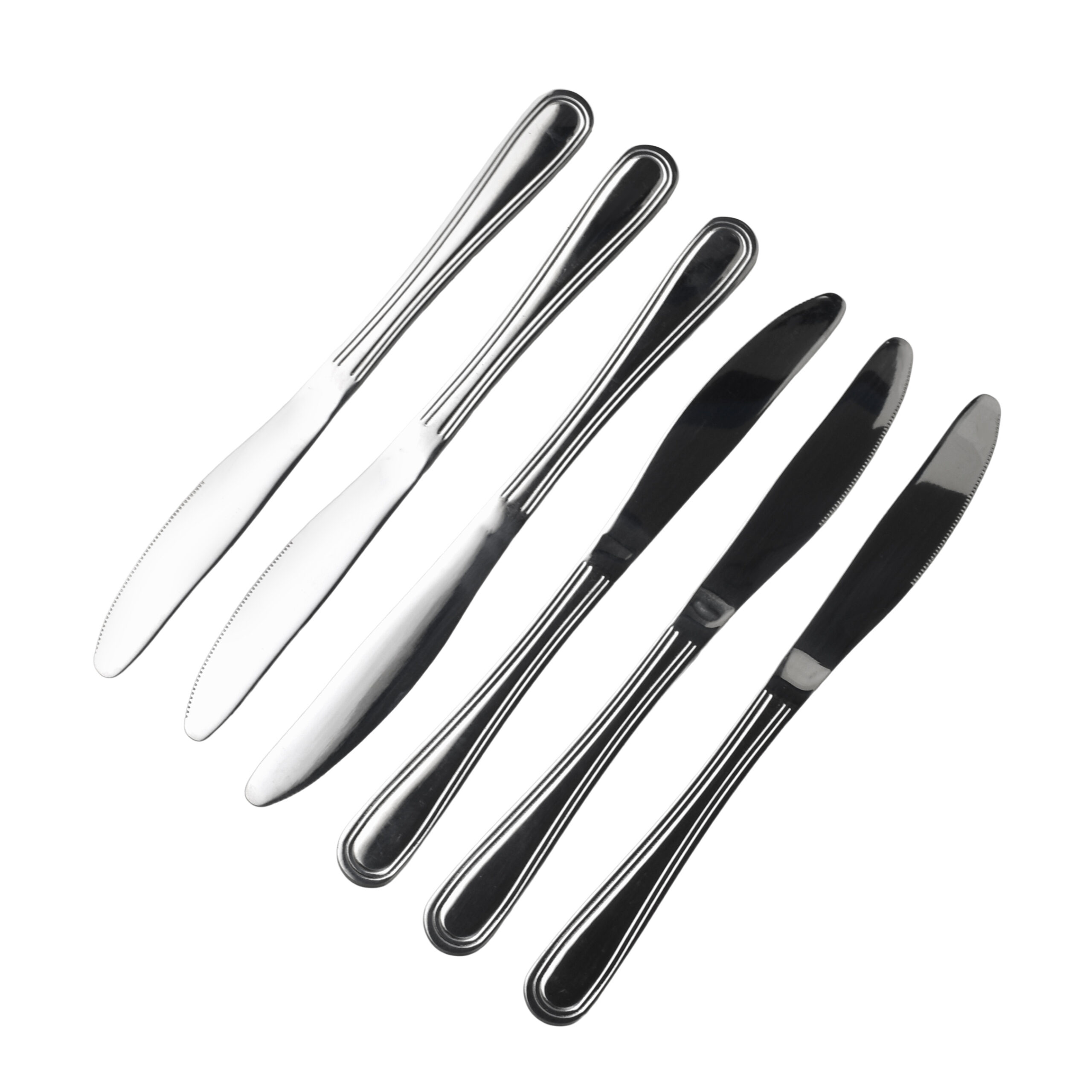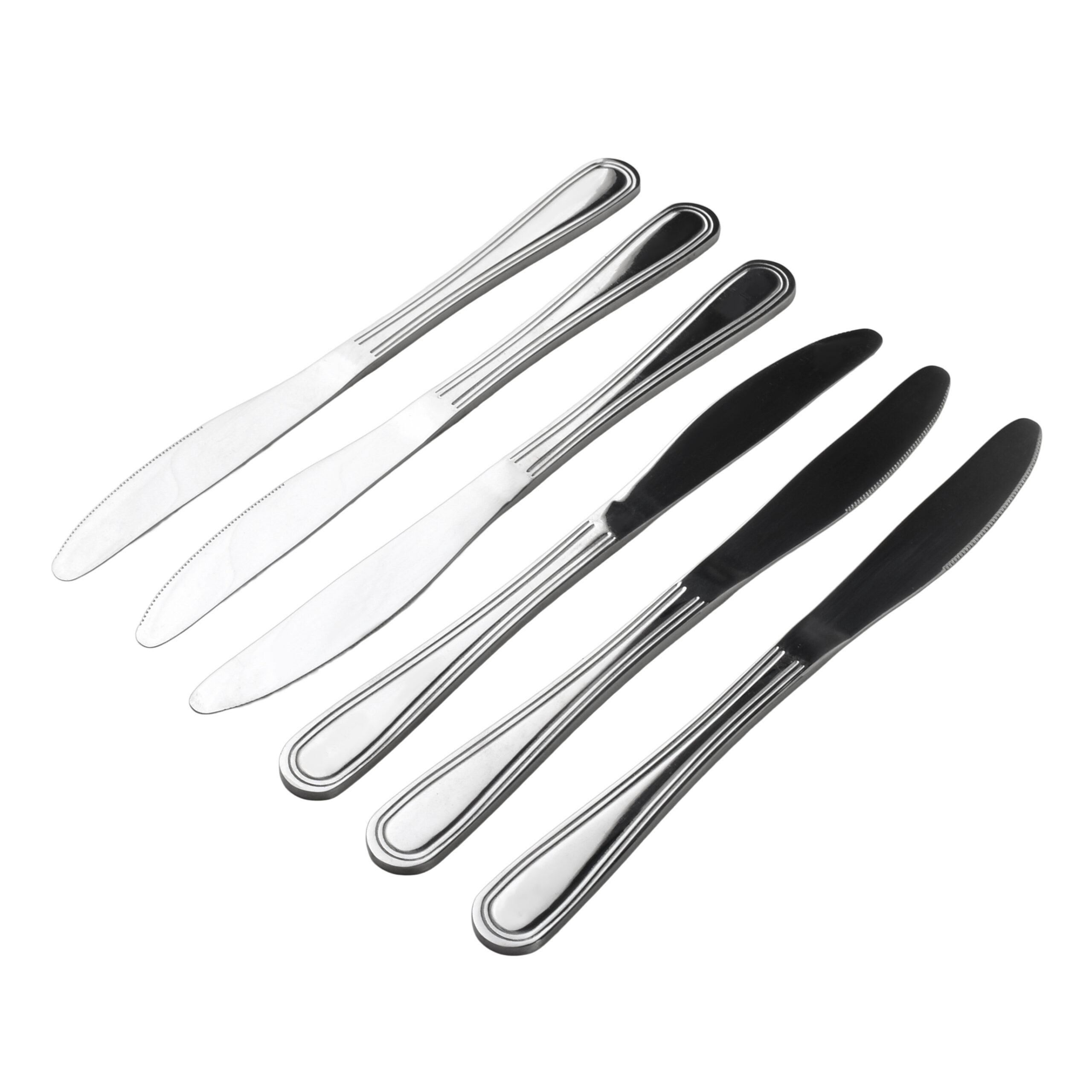 Komplet 6 noży DAISY o długości 22cm to praktyczne i estetyczne uzupełnienie każdej kuchni. Noże wykonane zostały z wysokiej jakości stali nierdzewnej, co zapewnia trwałość, odporność na korozję oraz długotrwałą ostrość. Ich uniwersalnyrozmiar sprawia, że świetnie sprawdzają się do codziennego użytku . zarówno do krojenia warzyw, owoców, jak i mięsa czy pieczywa. Gładka powierzchnia ułatwia czyszczenie, a możliwość mycia w zmywarce czyni je wyjątkowo wygodnymi w codziennej pielęgnacji. Nowoczesny i elegancki wygląd noży DAISY sprawia, że będąone nie tylko funkcjonalnym, ale i stylowym dodatkiem do kuchni. długość: 22,5cm