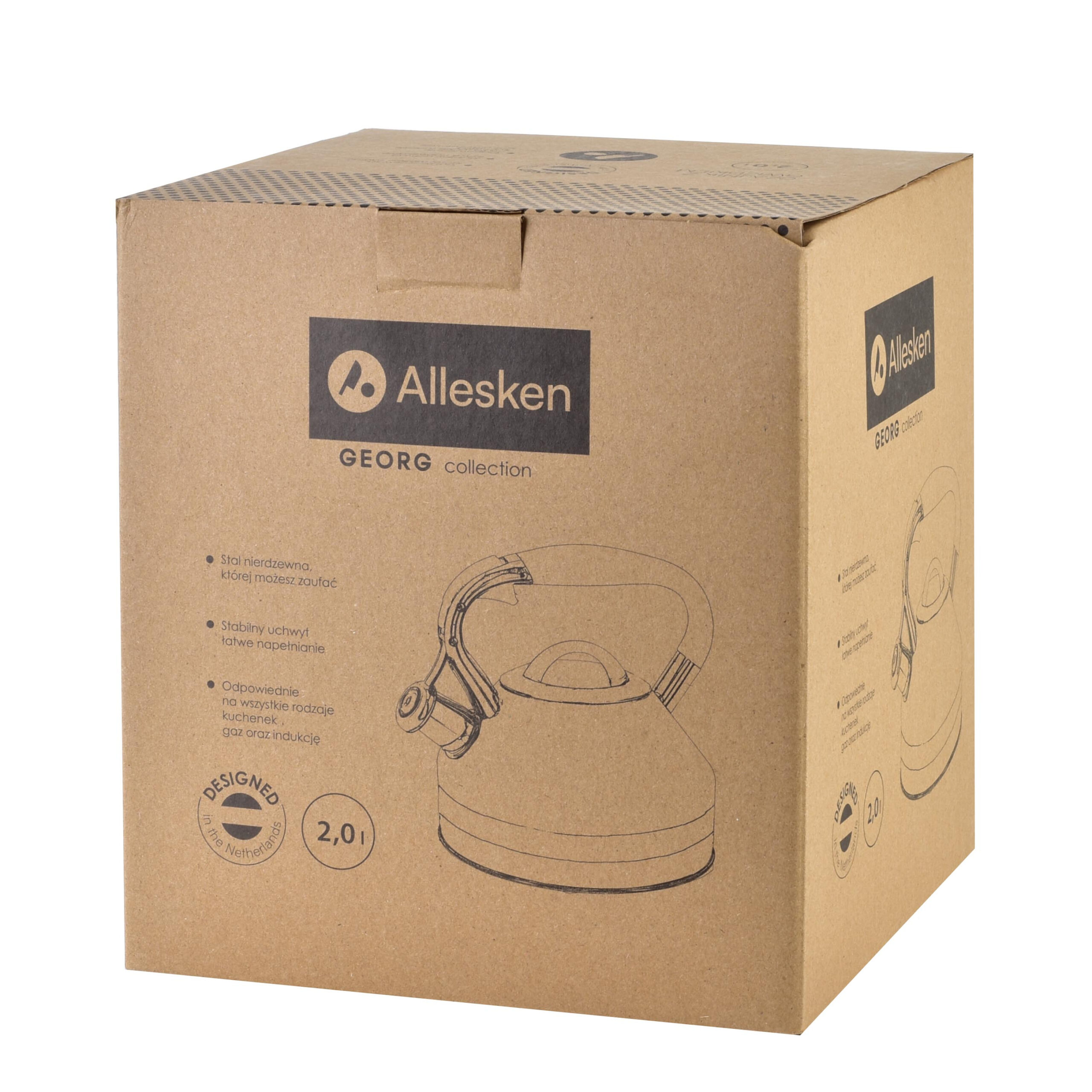 Przedstawiamy czajnik GEORG marki ALLESKEN o pojemności 2,0 litra . doskonały wybór dla każdej kuchni. Czajnik GEORG został wykonany z wysokiej jakości stali nierdzewnej, co zapewnia jego wytrzymałość i elegancki wygląd. Dzięki nowoczesnemu designowi i praktycznym funkcjom, czajnik GEORG staje się niezastąpionym elementem każdej kuchni. Główne cechy produktu:Materiał: wysokiej jakości stal nierdzewna, odporna na rdzewienie i korozję. Pojemność: 2,0 litra, idealna dla większych rodzin i gości. Ergonomiczny uchwyt: zapewnia wygodne i bezpieczne użytkowanie. Gwizdek: informuje o zagotowaniu wody, zapewniając wygodę i bezpieczeństwo. Stylowy design: nowoczesny wygląd, który doskonale komponuje się z wystrojem każdej kuchni.Dlaczego warto wybrać czajnik GEORG? Wytrzymałość: solidna konstrukcja ze stali nierdzewnej gwarantuje długotrwałe użytkowanie. Łatwość czyszczenia: stal nierdzewna jest łatwa do utrzymania w czystości, co pozwala na długotrwałe użytkowanie bez problemów. Bezpieczeństwo: stal nierdzewna nie reaguje z wodą, zapewniając zdrowe i bezpieczne użytkowanie. Wybierz czajnik GEORG 2,0L, aby cieszyć się niezawodnością, elegancją i funkcjonalnością w swojej kuchni każdego dnia. Średnica dna: 19cm Wysokość z rączką: 22cm