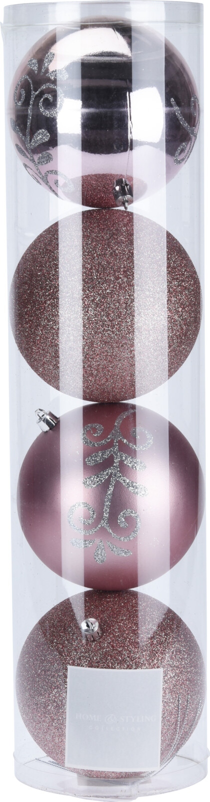KOMPLET 4 BOMBEK ŚWIĄTECZNE 12CMRÓŻOWE
