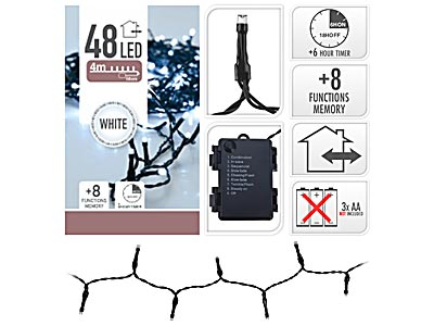 ŁAŃCUCH LED 48L BIAŁY 5MM na baterie 8 FUNKCJI ŚWIECENIA TIMER 3x AA 1,5V