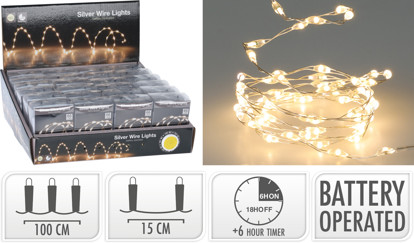 ŁAŃCUCH LED 66LED WW 1M TIMER NA BATERIE