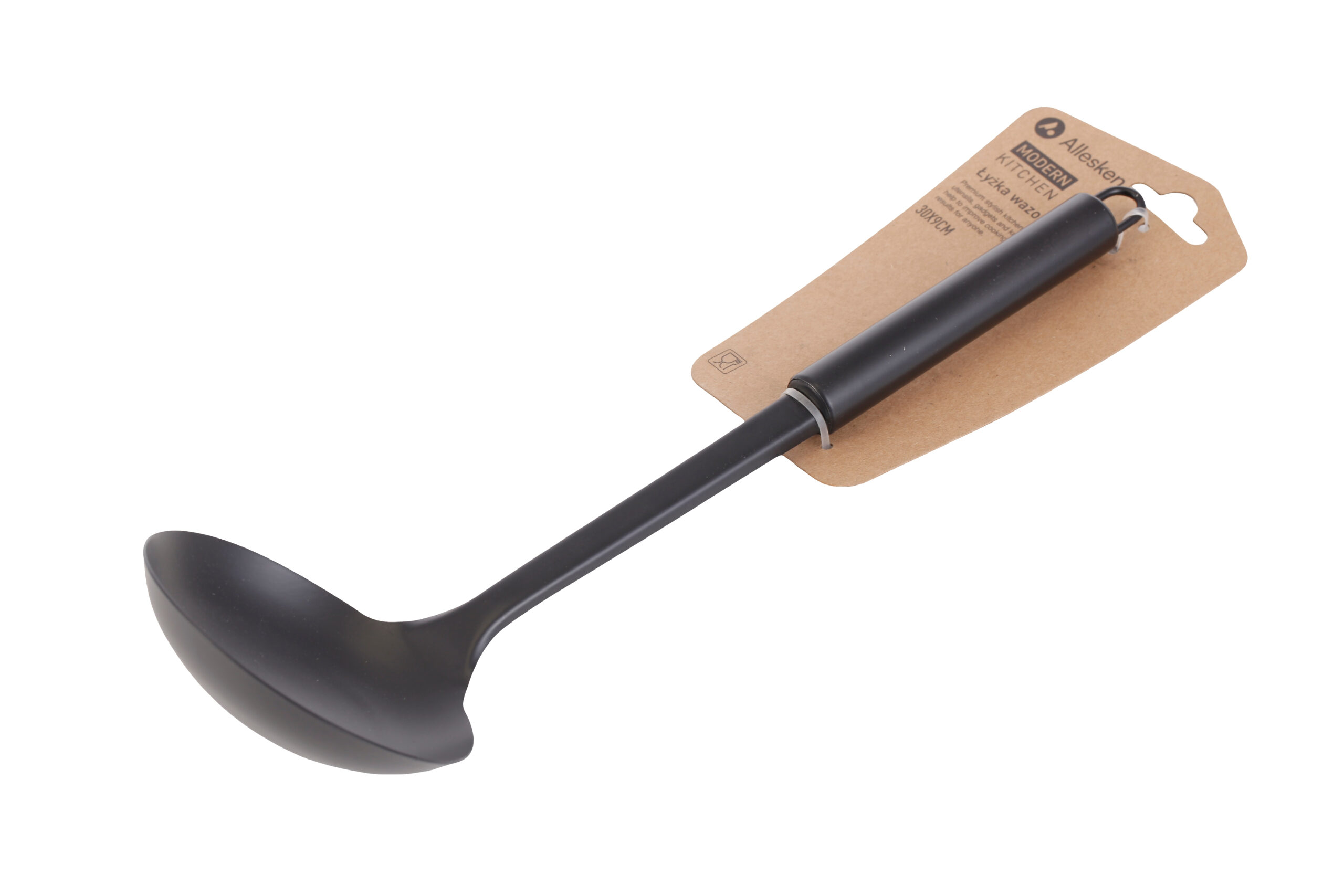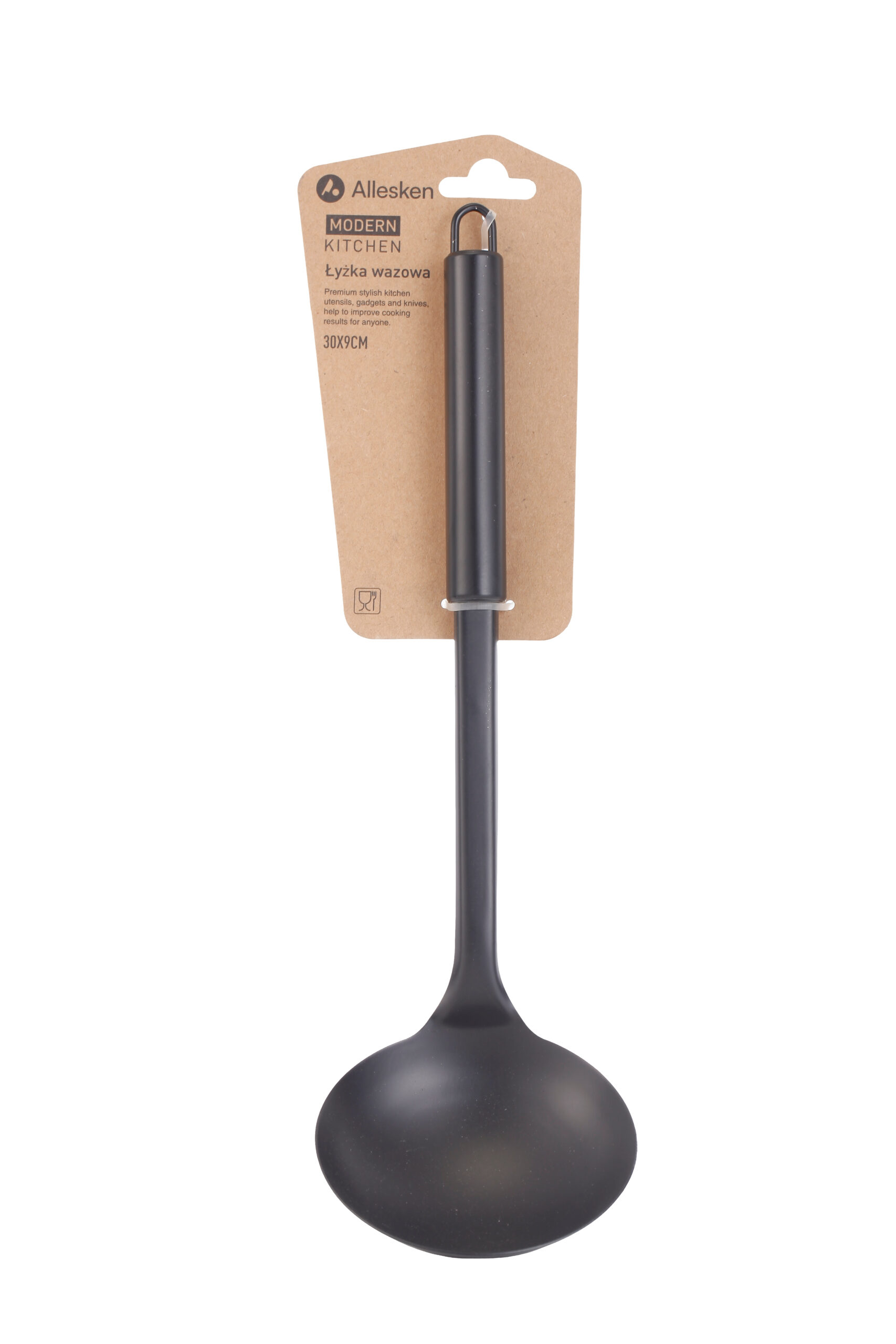 Poznaj łyżkę wazową Modern Kitchen . niezastąpiony element w Twojej kuchni. Wykonana ze stali nierdzewnej, w eleganckim czarnym kolorze, łączy trwałość z nowoczesnym designem. Wyposażona w uchwyt na rączce do powieszenia, dzięki czemu zawsze jest pod ręką. Idealna do serwowania zup, gulaszu, sosów, a także ponczu na przyjęciach. Ergonomiczny kształt zapewnia wygodę użytkowania, a solidna konstrukcja gwarantuje długowieczność. Wybierz łyżkę wazową Modern Kitchen i ciesz się wygodą oraz elegancją podczas każdego posiłku.