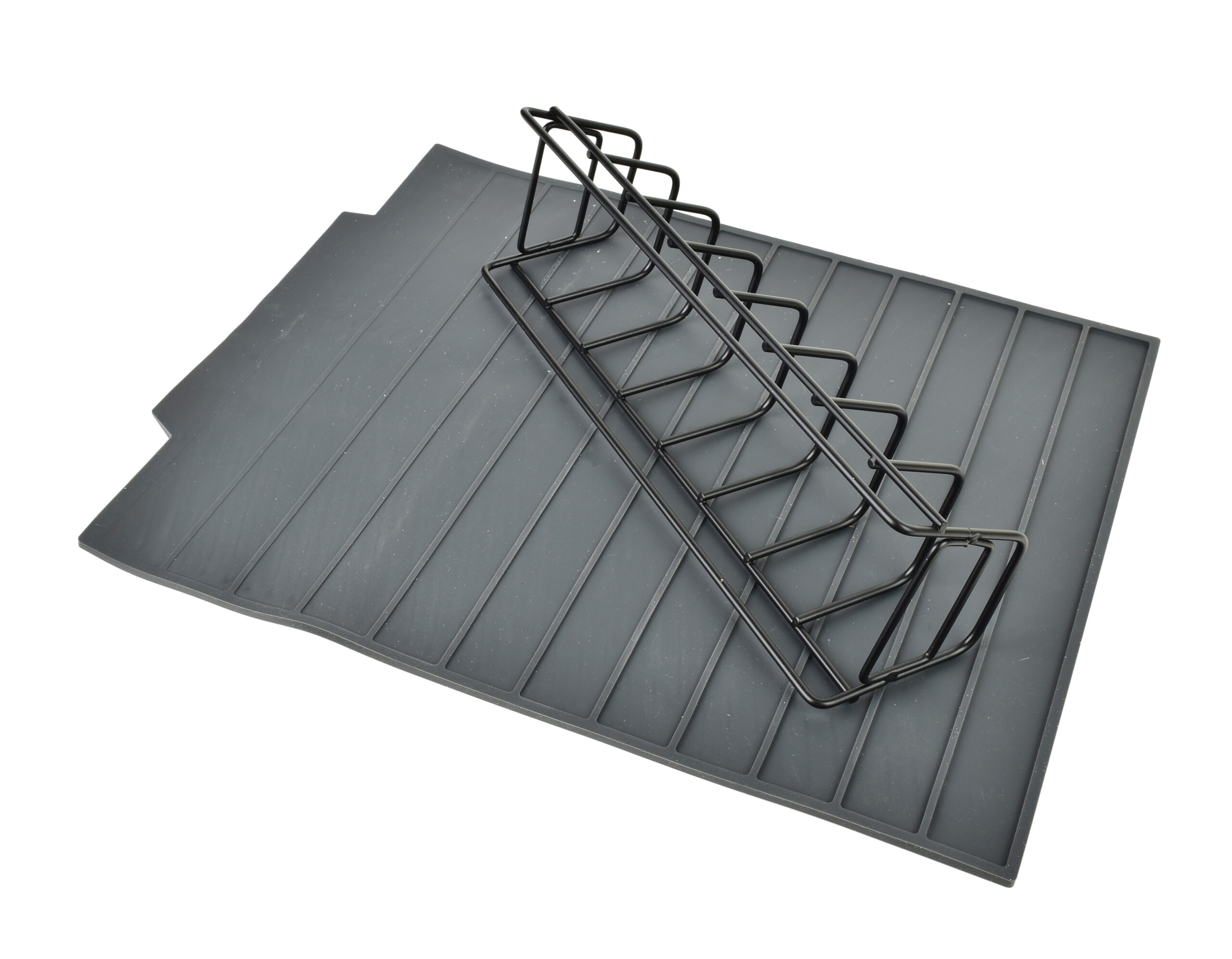 Ociekacz silikonowy ze stelażem MODERN KITCHEN to nowoczesne i funkcjonalne rozwiązanie do codziennego użytkowania w kuchni. Składa się z solidnego metalowego stelaża w kolorze czarnym oraz elastycznej silikonowej maty, która skutecznie odprowadza wodę z naczyń, sztućców czy szklanek. Dzięki wymiarom 43 33 8 cm oferuje wystarczająco dużo miejsca na suszenie większej ilości naczyń, a jednocześnie nie zajmuje zbyt wiele przestrzeni na blacie. Stelaż zapewnia stabilność i odpowiednią cyrkulację powietrza, a miękka mata chroni delikatne powierzchnie przed zarysowaniami. Całość utrzymana jest w nowoczesnym stylu, idealnie komponując się z minimalistycznymi i industrialnymi wnętrzami. To praktyczny element wyposażenia kuchni, który łączy estetykę z wygodą użytkowania.
