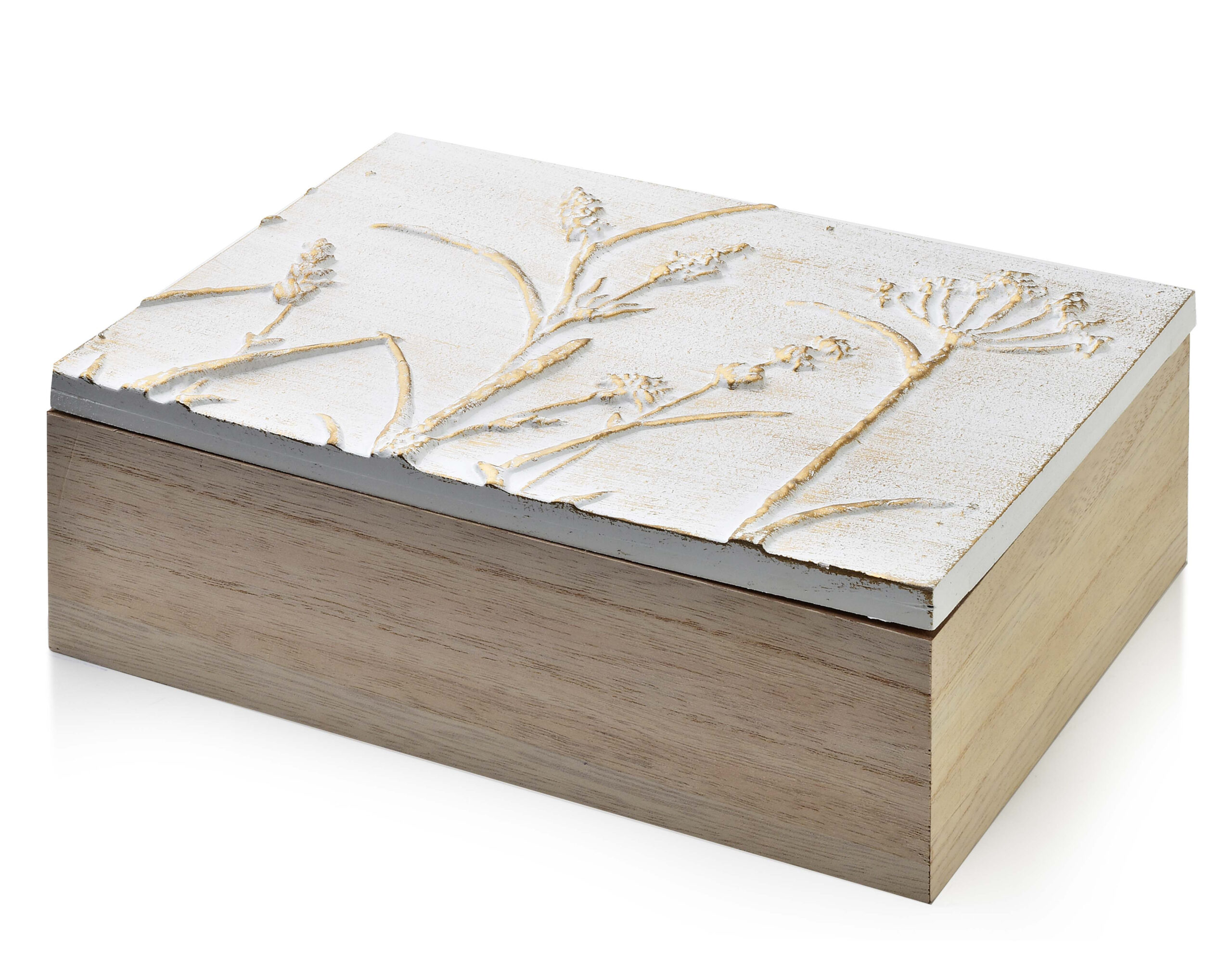 Pudełko SADIE marki MONDEX since 1986 na herbatę z 6 przegródkami. Wartościowe chwile wymagają odpowiedniej oprawy i nic nie podkreśla ich tak, jak ulubiona herbata serwowana w elegancki sposób. Przedstawiamy pudełko na herbatę z 6 przegródkami. Niezastąpiony element każdej kuchni lub salonu dla miłośników tego aromatycznego napoju.Główne cechy produktu:Przestrzeń: 6 wygodnych przegródek pozwala na schludne przechowanie różnych rodzajów herbaty. Dzięki temu łatwo utrzymasz porządek i szybko znajdziesz ulubiony smak.Design: Klasyczna elegancja drewnianego wykończenia sprawi, że pudełko stanie się nie tylko praktycznym, ale i dekoracyjnym elementem. Pasuje do każdego wnętrza dodając mu charakteru.Funkcjonalność: Przejrzysta pokrywa pozwala na szybki wgląd do środka, co ułatwia wybór odpowiedniej herbaty, bez konieczności otwierania pudełka.Wytrzymałość: Wykonane z solidnych materiałów, gwarantuje stabilność i długowieczność, chroniąc jednocześnie Twoje herbaty przed wilgocią i zanieczyszczeniami.Wszechstronność: Możliwość przechowywania nie tylko herbat, ale również innych drobnych przedmiotów, sprawia, że pudełko jest wielofunkcyjne.wymiary:24×17,5xh8cmwaga: 714g/770gzapakowane jednostkowo w brązowy box: 25×18,5xh9cmprzecierać wilgotną szmatkąprzegródka: 7×7,5cm