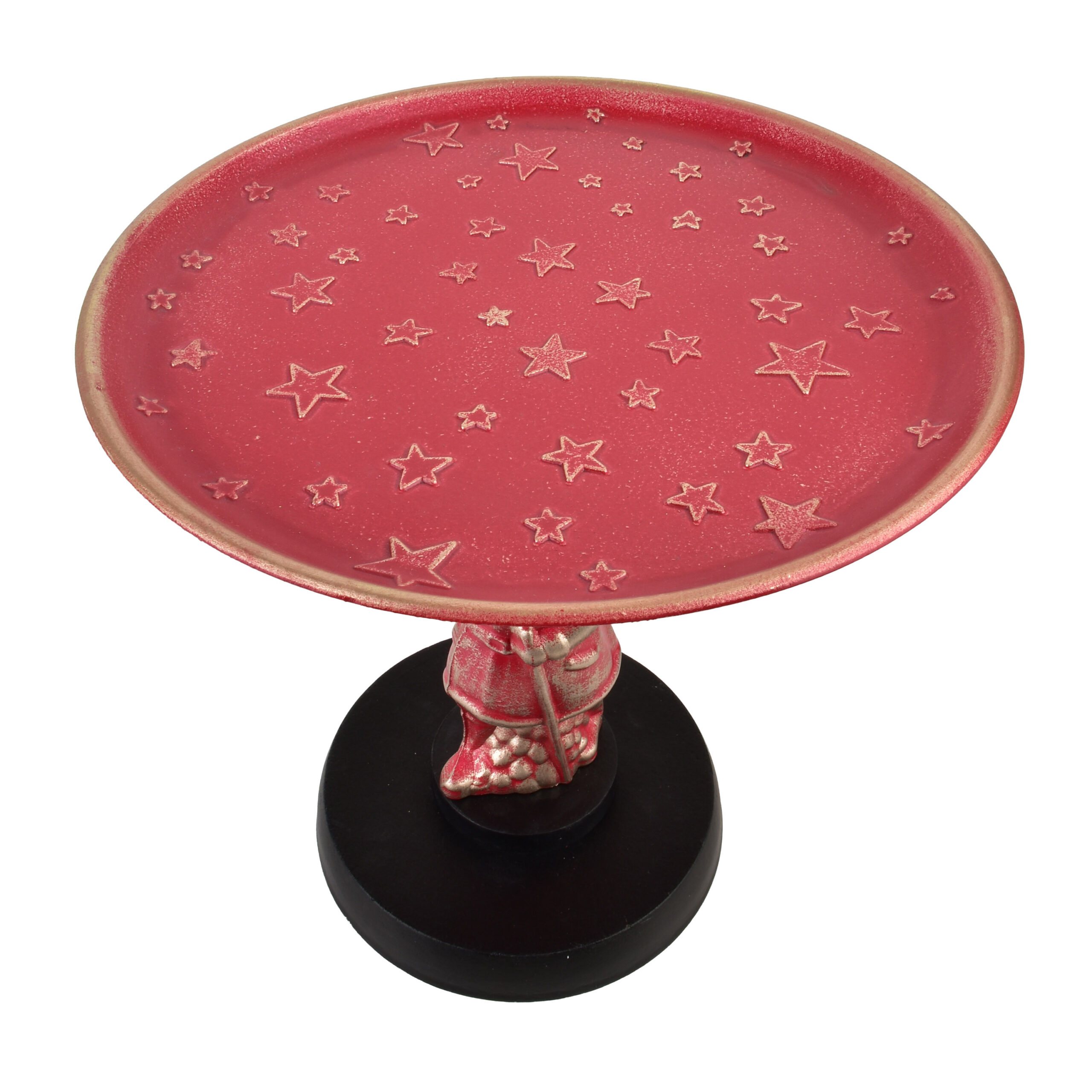 SANTA LILA. Patera dekoracyjna 30,5 30,5 28 cmKolor czerwony z przetarciami złotaOpis produktu: Wyjątkowa, świąteczna patera dekoracyjna z kolekcji SANTA LILA w głębokim, klasycznym odcieniu czerwieni z delikatnymi przetarciami w kolorze złotym. To doskonały wybór dla tych, którzy cenią sobie tradycyjne barwy Bożego Narodzenia połączone z eleganckim wykończeniem.Cechy charakterystyczne:Wymiary: 30,5 cm (szerokość) 30,5 cm (głębokość) 8 cm (wysokość)Materiał: Najczęściej drewno lub kompozyt drewniany (możliwość dostosowania do konkretnego składu).Kolorystyka: Głęboka czerwień z przecieranym złotem, podkreślająca świąteczny klimat i styl vintage.Styl: Idealna dla wnętrz utrzymanych w duchu tradycyjnego Bożego Narodzenia, a także pasująca do aranżacji glamour i rustykalnych.Zastosowanie:Do podania świątecznych wypieków, pierników, orzechów, czekoladek lub mandarynek.Może służyć jako baza dla stroika lub świec adwentowych.Doskonale wygląda na stole wigilijnym, konsoli, komodzie, a także w witrynie sklepowej lub restauracyjnej.Uwagi:Każda sztuka jest unikatowa . ręczne przetarcia złotem mogą różnić się od siebie.Produkt przeznaczony głównie do celów dekoracyjnych . nie należy myć w zmywarce, nie używać do mokrej żywności.Czyścić delikatnie, wilgotną ściereczką.