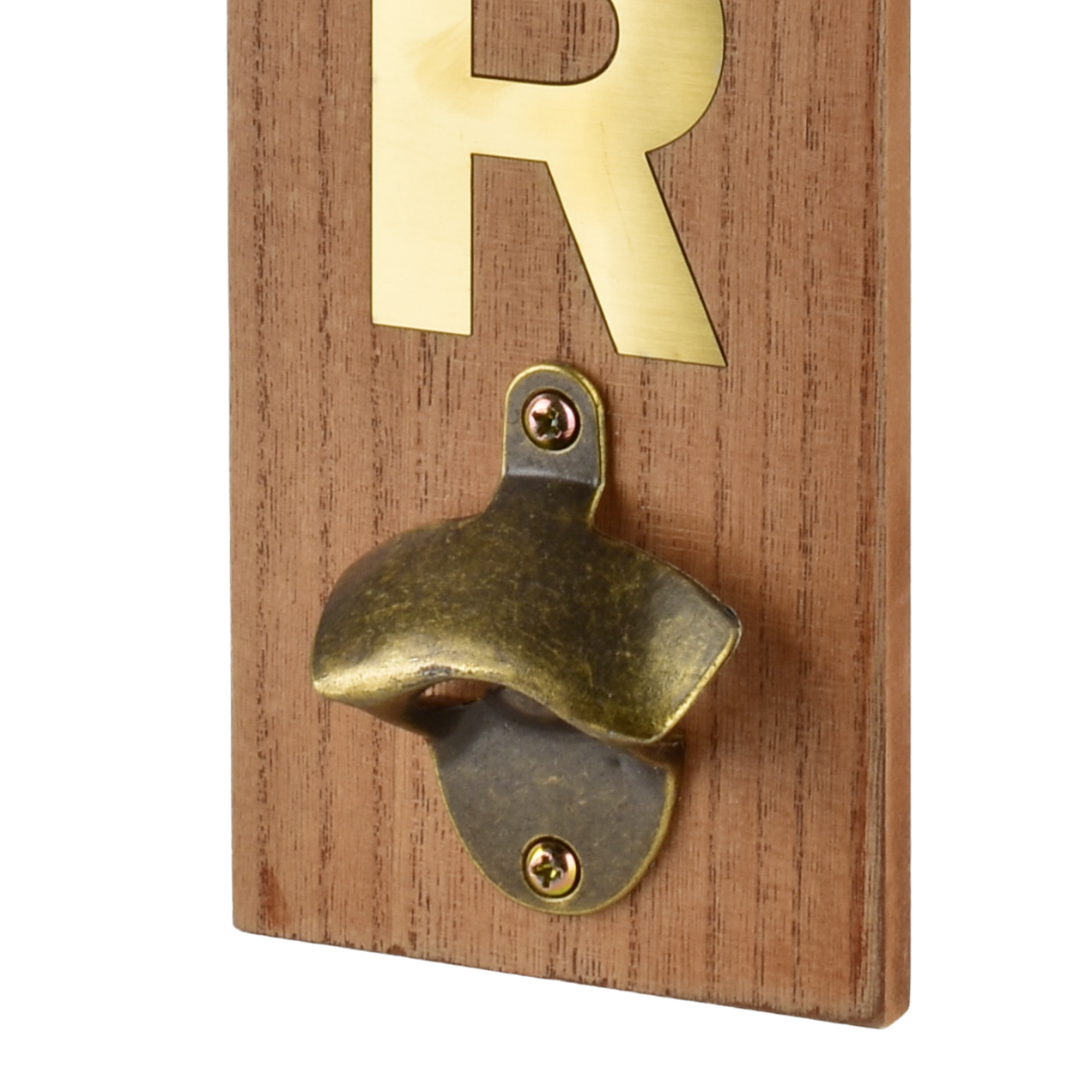 Otwieracz do butelek wykonany z drewna, przeznaczony do zawieszenia na ścianie, z eleganckim, złotym napisem BEER. Drewno ma naturalne wykończenie, które podkreśla jego rustykalny charakter. Napis w kolorze złota dodaje mu subtelnej elegancji i wyrazistości. Całość zaprojektowana z myślą o stylu industrialnym lub klasycznym, doskonale komponującym się z różnymi aranżacjami wnętrz. Otwieracz wyposażony jest w metalowy uchwyt na kapsle, co czyni go zarówno praktycznym, jak i dekoracyjnym elementem w każdej kuchni czy pokoju.