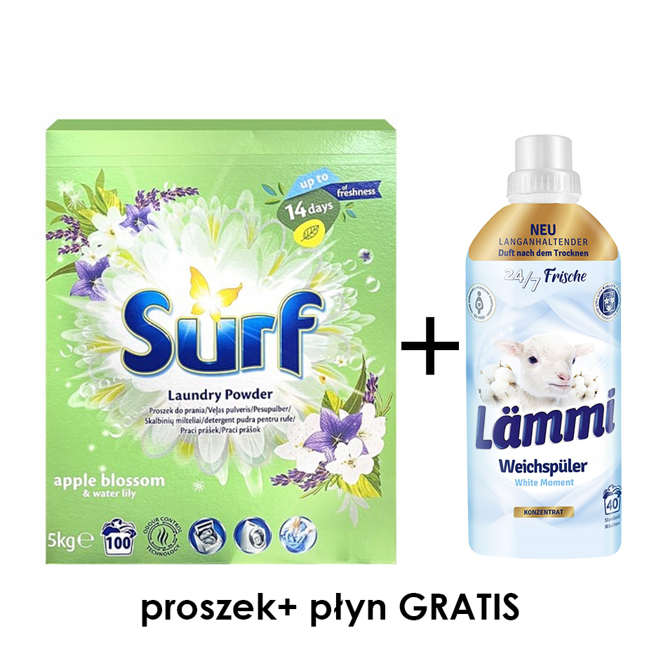SURF proszek do prania 5kg Apple Blossom 100p+gratis płyn do płukania 1l