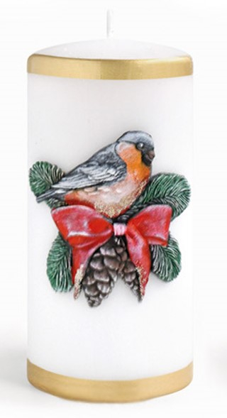 Świeca ZIMOWY PTASZEK walec średni 7x14cm parafinowa biała