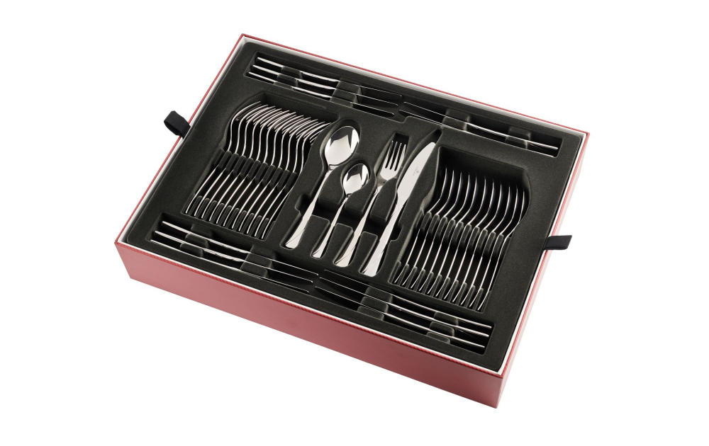 Zestaw sztućców 68 szt. VALOR . klasyczna forma i subtelne zdobienieDyskretna elegancja, lekkość stylu i najwyższa jakość to charakterystyczne cechy linii Valor. Ten 68 elementowy zestaw cechuje klasyczna forma oraz subtelne zdobiena. Kontakt z wyjątkową estetyką przedmiotu nada zupełnie nowy charakter codziennym czynnościom. Pożywny posiłek po pracy lub podwieczorek przy herbacie okażą się przyjemnym momentem wytchnienia każdego dnia.Szczegółowy opis:68-elementowy komplet dla dwunastu osób Valor cechuje perfekcyjne wyważeniem każdego z elementów zastawy, wyjątkowa precyzja oraz pewność długoletniej satysfakcji z produktu.Dzięki stali nierdzewnej 18/10 elementy zestawu odporne są na działanie korozji i nadają się do mycia w zmywarce.Firma Gerlach udziela wieczystej gwarancji na wszystkie sztućce Valor.Sztućce Gerlach podlegają restrykcyjnym kontrolom jakości.Oryginalne, ozdobne opakowanie produktów Gerlach idealnie pasuje na prezent dla najbliższych.Skład zestawu sztućców: Nóż obiadowy . 12 szt. Widelec obiadowy . 12 szt. Łyżka obiadowa . 12 szt. Łyżeczka do herbaty – 12 szt. Widelczyk do ciasta . 12 szt. Łyżka do sałaty/ziemniaków . 2 szt. Widelec do sałaty . 1 szt. Widelec półmiskowy . 1 szt. Łyżka do sosu . 1 szt. Łyżka wazowa . 1 szt. Łyżeczka do cukru . 1 szt. Łopatka do tortu . 1 szt. Pudełko – 1 szt.