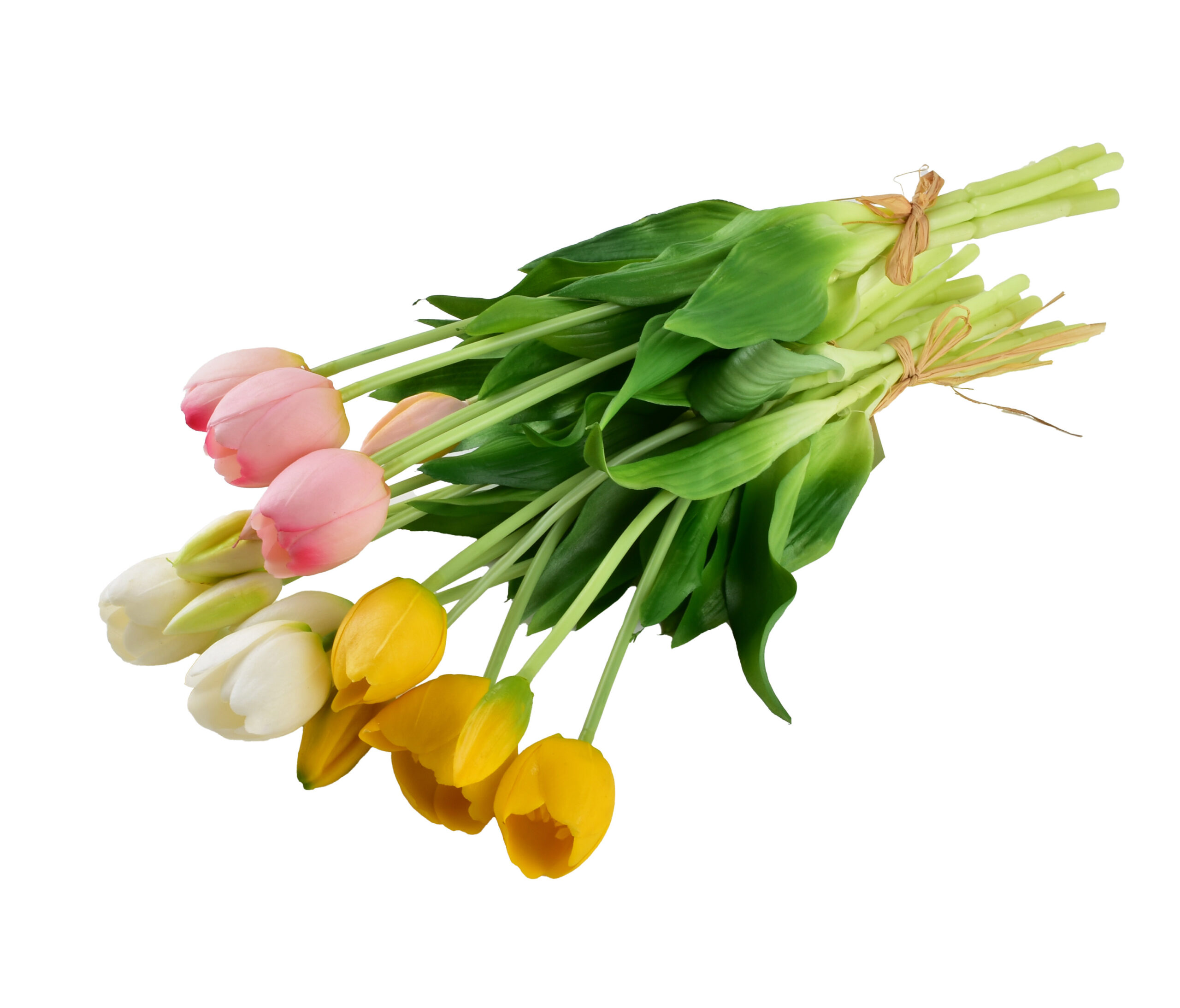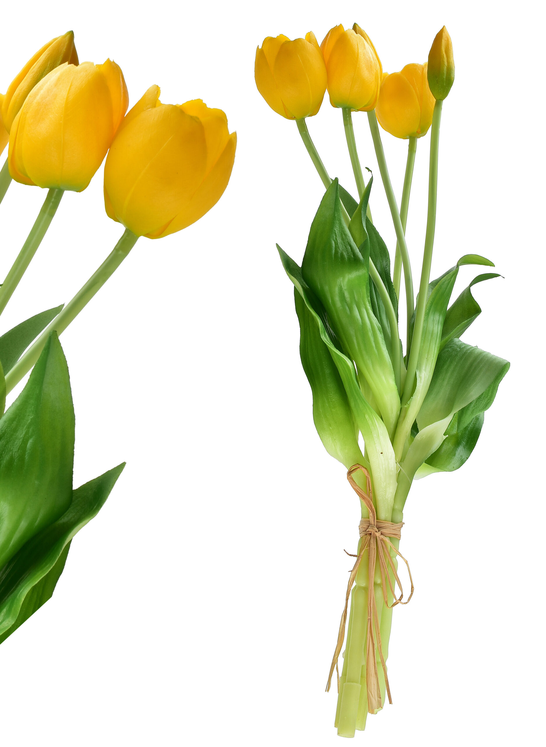 VIRIDIS . Komplet: Bukiet 5 żółtych tulipanów z silikonuBukiet pięciu białych tulipanów z kolekcji VIRIDIS to wyjątkowa propozycja dla tych, którzy pragną wprowadzić do wnętrza subtelne piękno natury. Bez konieczności pielęgnacji. Wykonane z wysokiej jakości silikonu, tulipany wyglądają niemal identycznie jak żywe kwiaty . mają realistyczną fakturę płatków, naturalne ubarwienie oraz elastyczne, delikatne w dotyku łodygi.Każdy z pięciu kwiatów w bukiecie zachwyca swoją precyzją wykonania: Płatki: miękkie, matowe, żółte oddające wygląd świeżo rozkwitających tulipanów.Łodygi i liście . zielone, z subtelnym połyskiem, giętkie, co pozwala je formować według własnych upodobań.Bukiet idealnie sprawdzi się jako dekoracja stołu, komody lub parapetu, atakże jako element aranżacji weselnej, wielkanocnej lub prezent dla bliskiej osoby. Dzięki trwałości materiału, tulipany VIRIDIS zachowują swój wygląd przez długi czas, bez więdnięcia, opadających płatków czy konieczności podlewania.To połączenie elegancji i wygody, sztuczne, a jak prawdziwe.